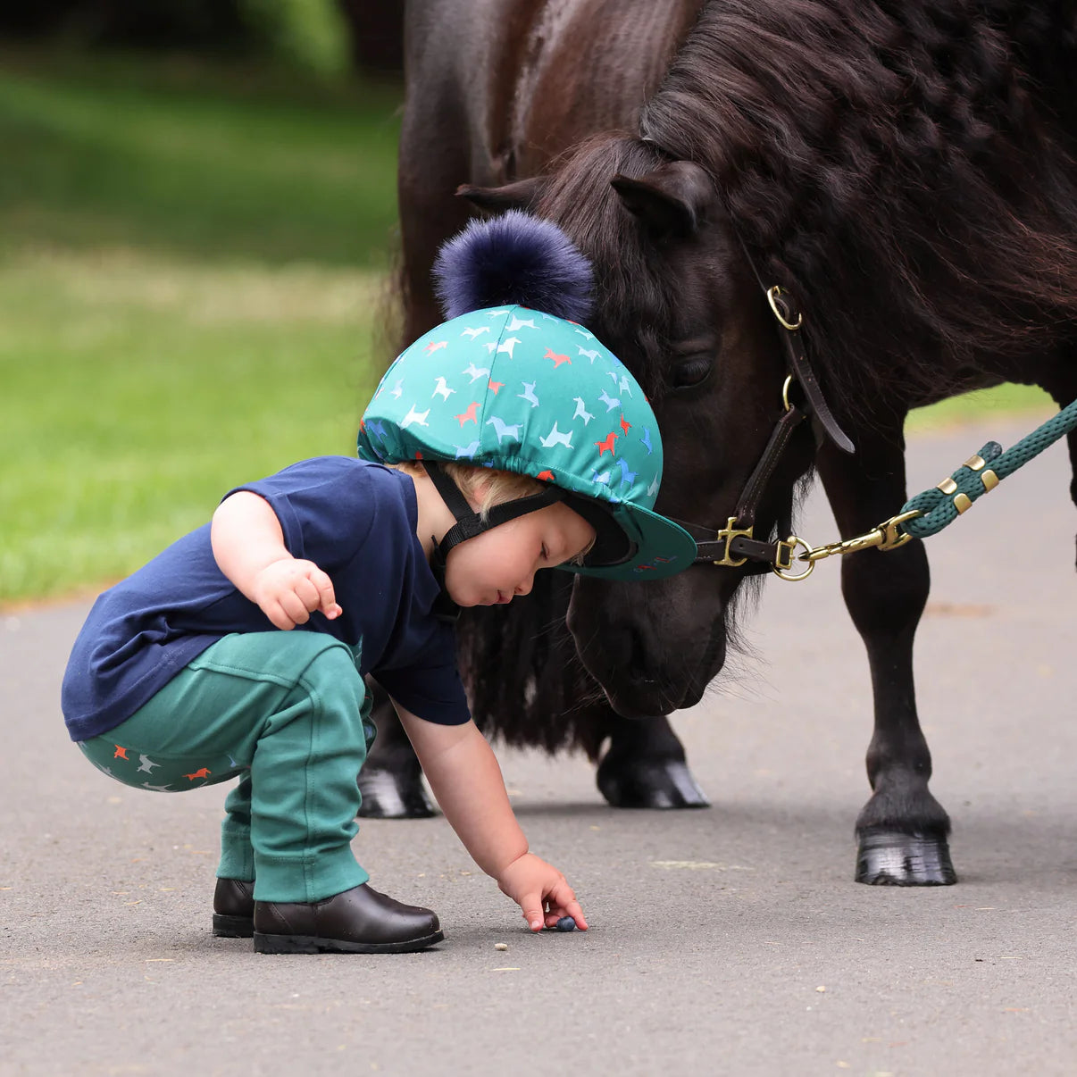 Tikaboo coordinating hat silk with fun prints and faux fur pom pom.