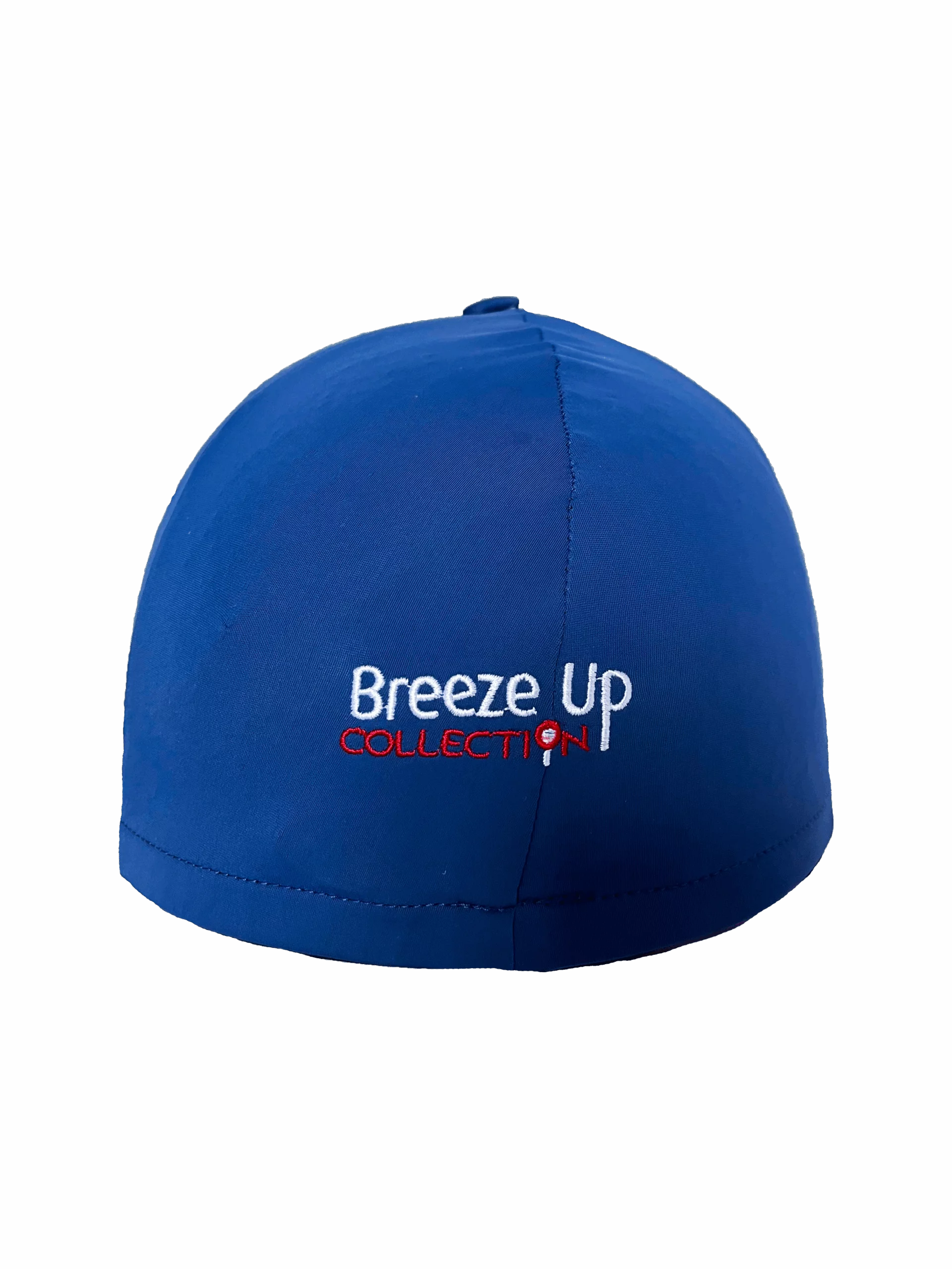 The Breeze Up Collection lycra helmet cover comes with a button top and Breeze Up Collection logo.
