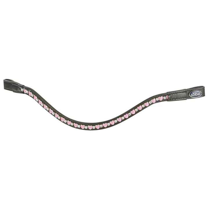 Black leather browband with sparkly hearts. Also available with black hearts (not pictured).