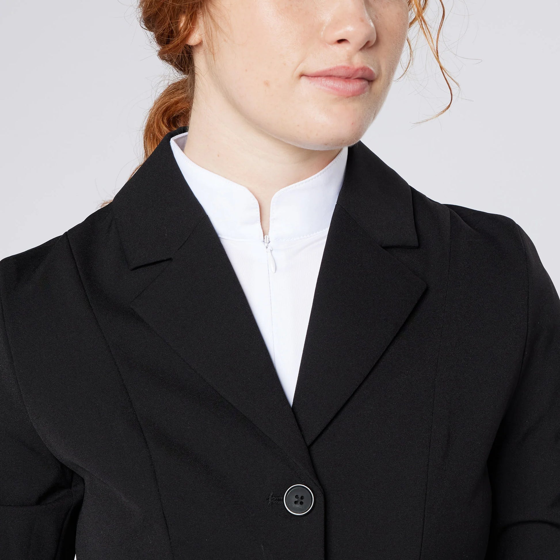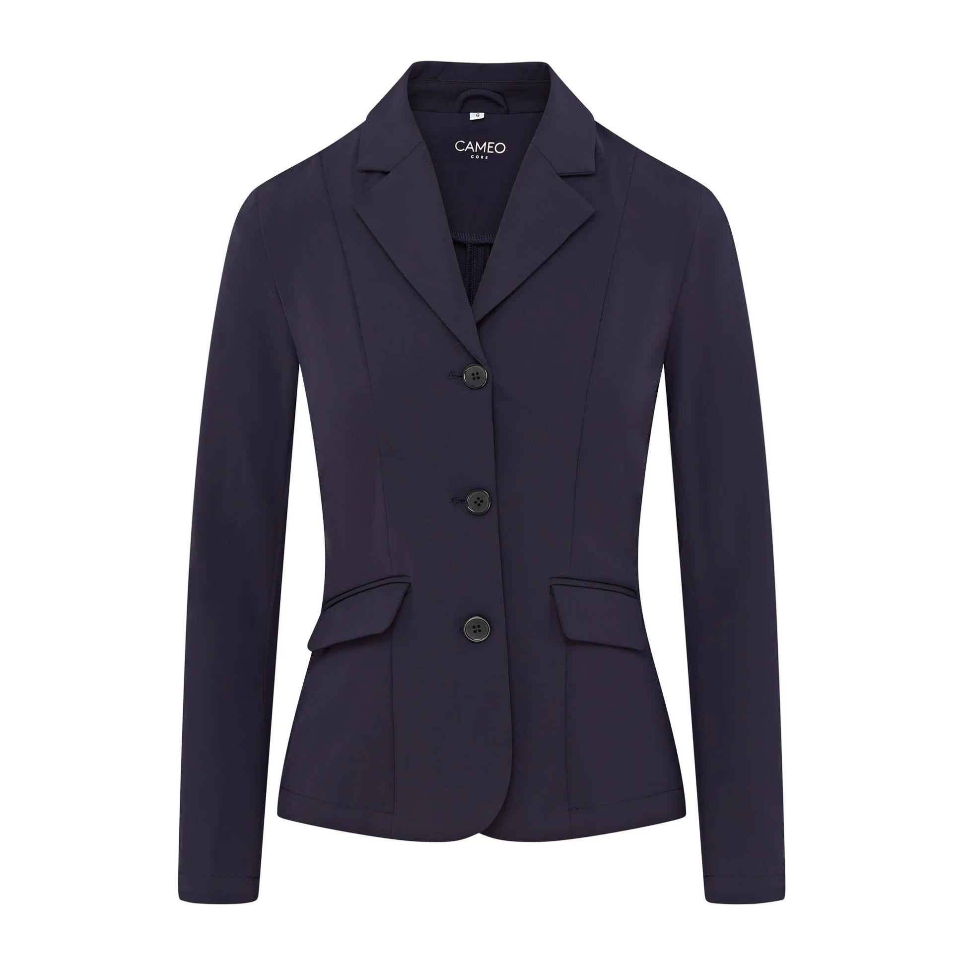 The Ada show jacket is made using CameoTech stretch fabric for comfort whilst competing. Premium fabric offers flexibility, comfort, and a snug fit. The jacket is structured and fitted to the body, offering a polished and stylish look. The hidden zip contributes to a clean and seamless appearance. The use of double front pockets enhances the overall design and symmetry of the jacket offering style at an affordable price.