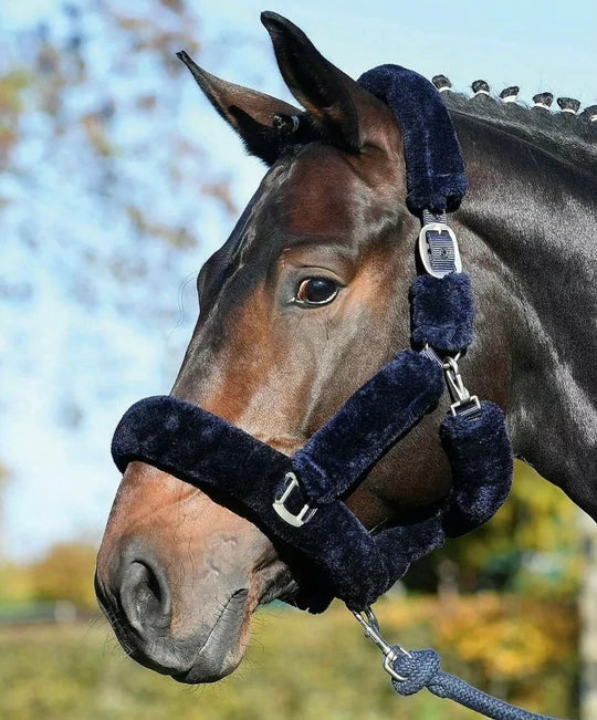The ultimate in horse comfort. This Deluxe fur headcollar needs to be touched to be believed. Strong yet super soft, this is bound to be a favourite for you and your horse. Great for travelling or for use with sensitive horses. The deluxe fur headcollar features robust no rust fittings and a strong throat lash for ease of use.