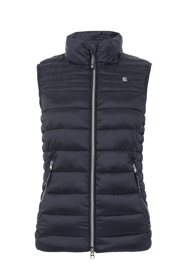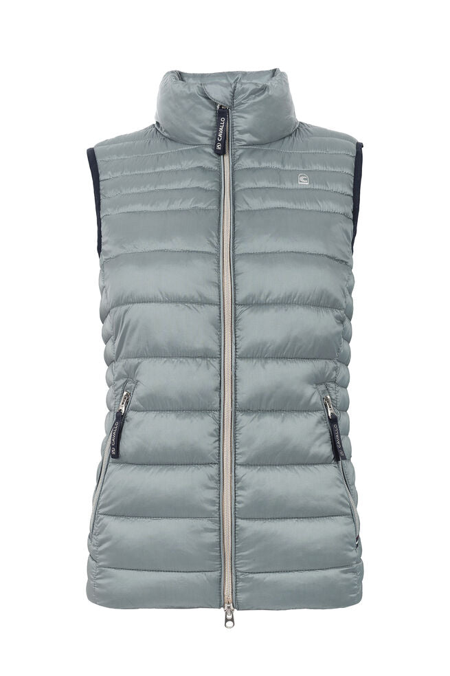 Sporty light quilted waistcoat with stand-up collar and slight waistline