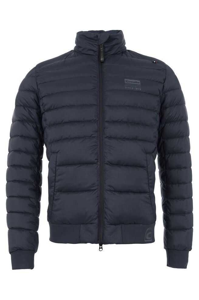 With stand-up collar in a sporty look. 2-way zip at the front. Two front pockets with zips Zips with tonal Cavallo woven ribbon pull. Practical hood integrated into the collar. Tonal knitted cuffs and hem as well as the inside of the collar. Tonal Cavallo print on the left hem. Fashionable Cavallo artwork on the left chest.