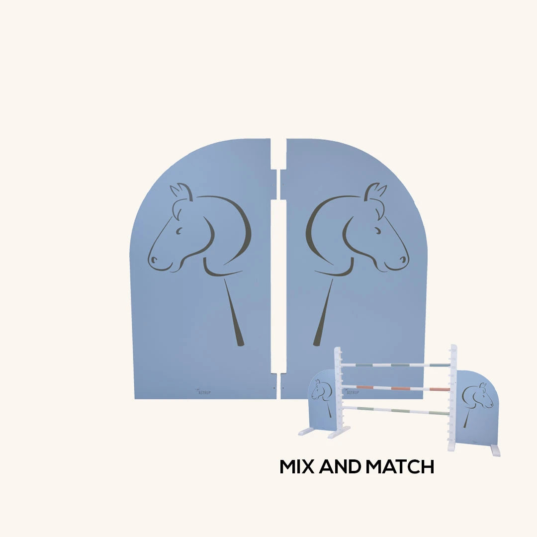 Customize the perfect hobby horse jump with this charming set of wings featuring an elegant outline of a hobby horse. Designed to easily pair with the matching jump base stand, these jump wings make a stunning addition to create a complete and adjustable show jump, perfect for young riders and their hobby horses to tackle exciting challenges. Mix and match with striped pastel-colored jump rails to craft unique and personalized jumps every time. This set is one of three distinctive jump wing designs available, each offering its own special touch. With endless possibilities, you can create dynamic and fun obstacle courses that spark creativity and bring flair to every play session.
