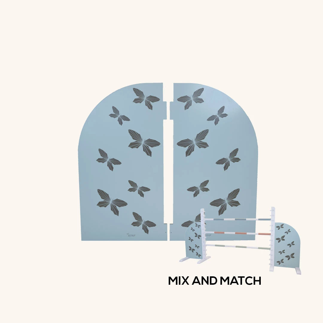 Customize the perfect hobby horse jump with this set of wings with beautiful golden butterflies, designed to easily pair with the matching base stands. These wings serve as the ideal addition to create a complete and adjustable show jump, allowing young riders and hobby horses to explore a variety of exciting challenges.