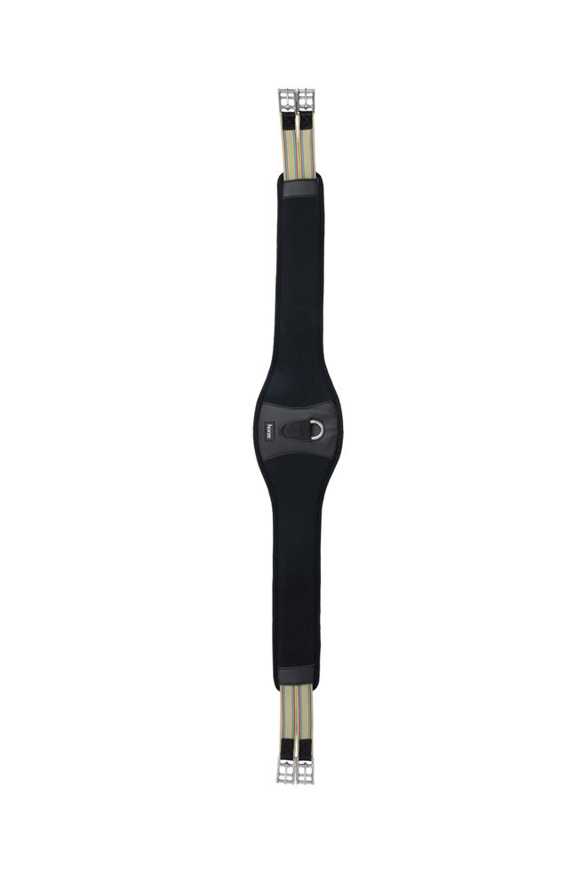 This soft, padded all-purpose girth from Horze offers superb comfort for your horse. Made from high quality memory foam that is reinforced at both ends for added strength and durability, the Marlborough long girth is great value for money and features a widened belly plate to evenly distribute pressure across the sternum for optimal comfort. With a stainless-steel carabiner hook in the centre, elasticated ends, and stainless-steel roller buckles, this girth combines strength and durability with optimum comfort for your horse.