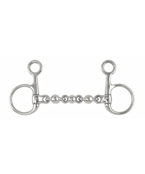The Waterford mouth is made up of many links making it difficult for the horse to lean or take hold of the bit. The hanging cheeks allow a little pressure to help encourage flexing. Mouthpiece thickness: 18mm. Cheek height: 110mm.