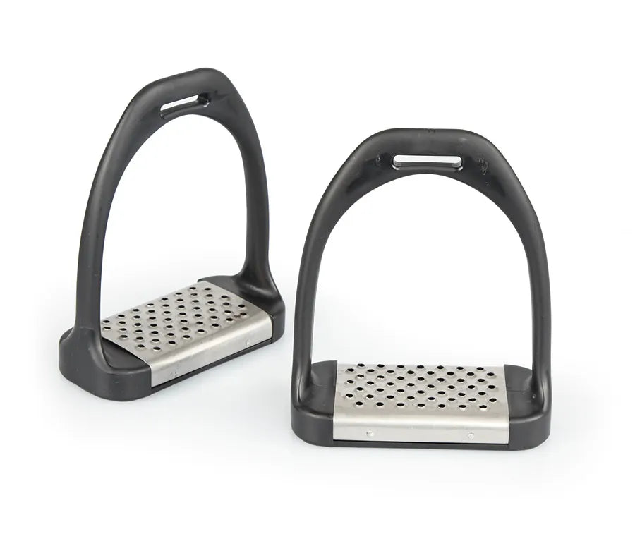 These lightweight, strong and durable plastic stirrups come complete with high grip metal treads. Note: irons should be chosen according to foot size, 1.25cm of space either side of riding footwear is correct.